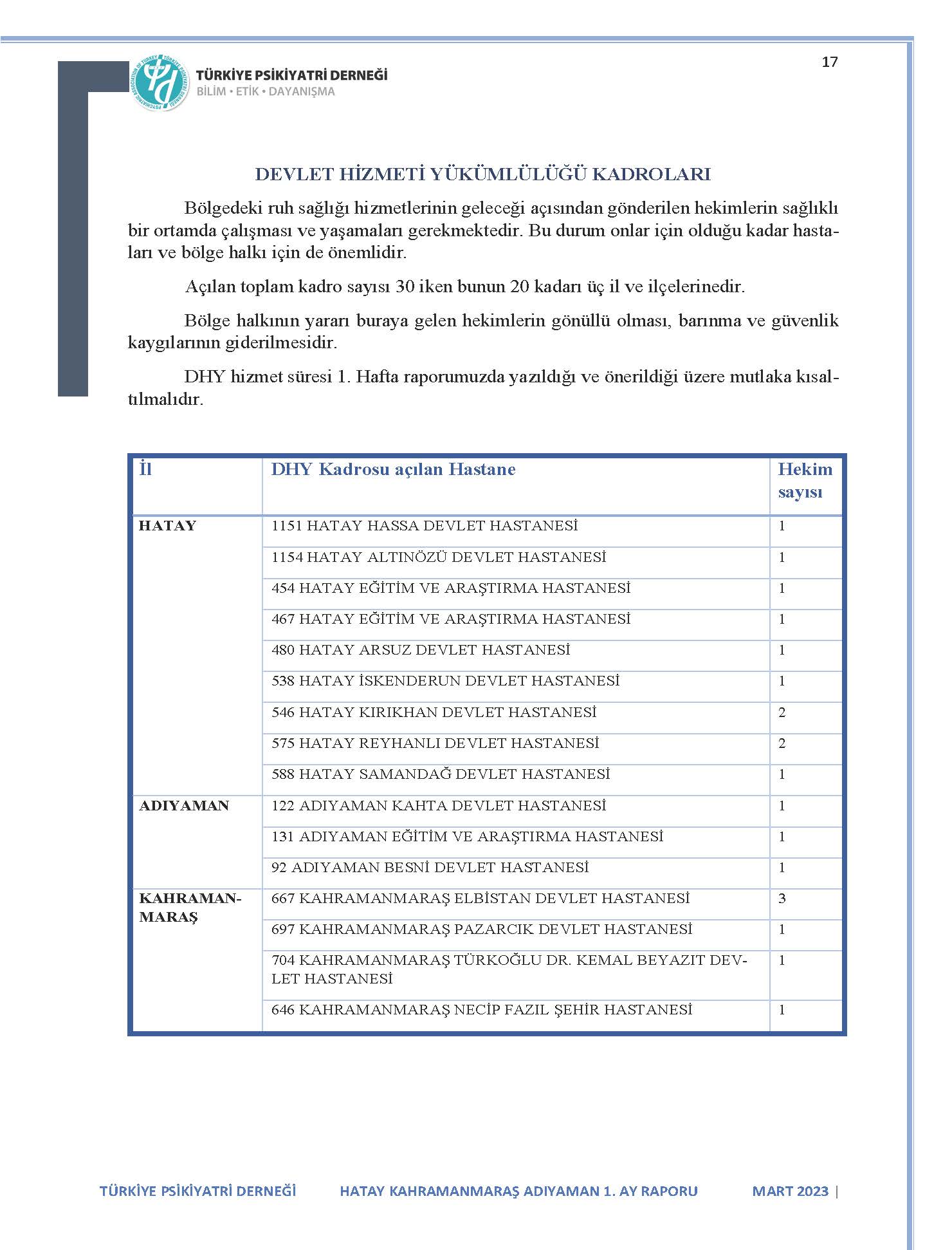 KLİNİK ÇALIŞMA DÜZENİ